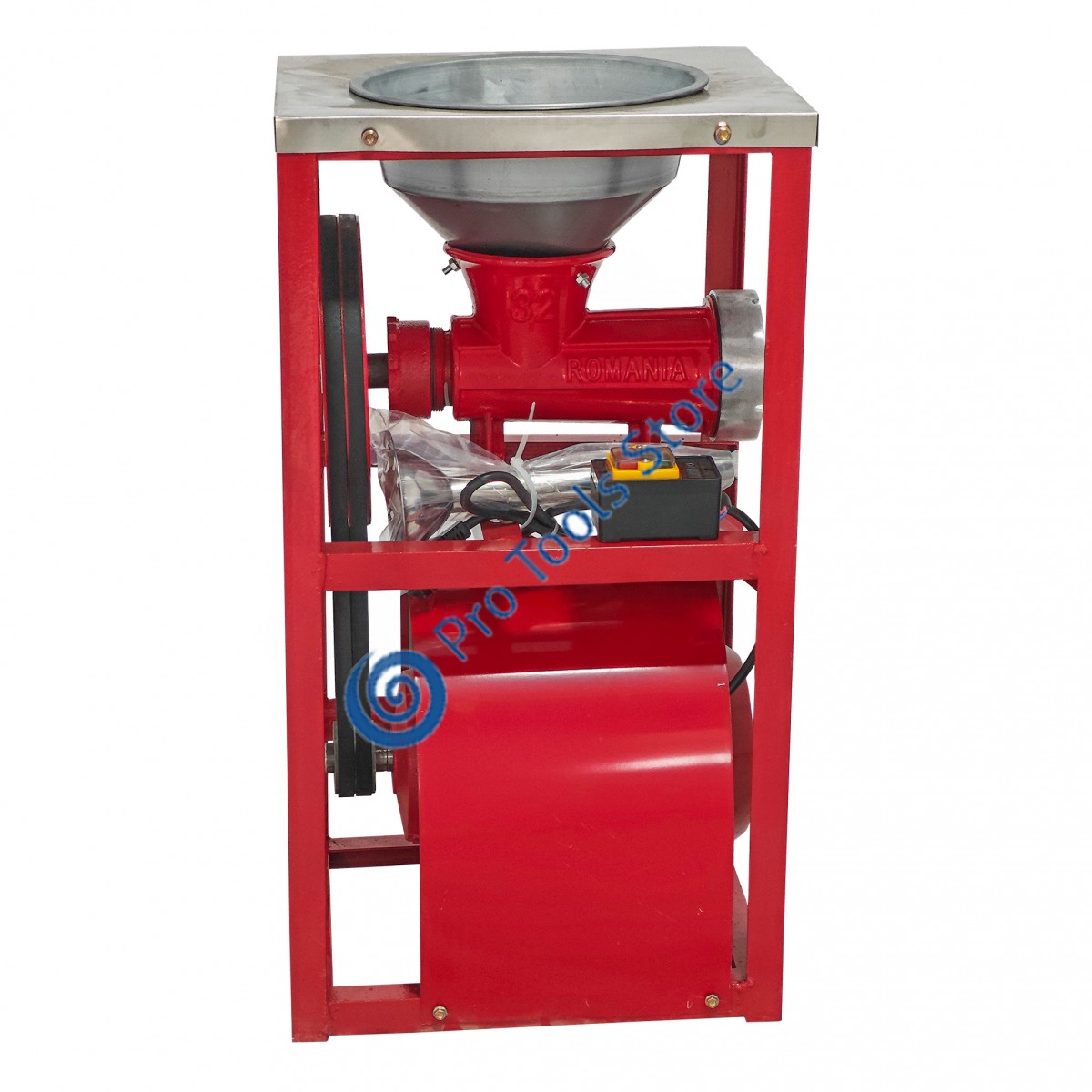 Masina de tocat carne profesionala, German Meister, 1,2 kw, 1400 rpm , palnie inox, nr 32, buton on/off , 2 curele