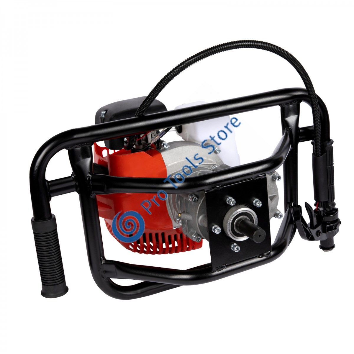 Pentru plantarea pomilor tineri puteti folosi si diametre mai mici, de 100 mm (nu se include in set). Motoburghiul poate fi purtat si manevrat usor de o singura persoana, cu gidonul cu doua manere. Forarea unei gauri verticale in sol este lejer de executat, ajustand acceleratia si efortul in functie de duritatea solului si a diametrului burghiului.